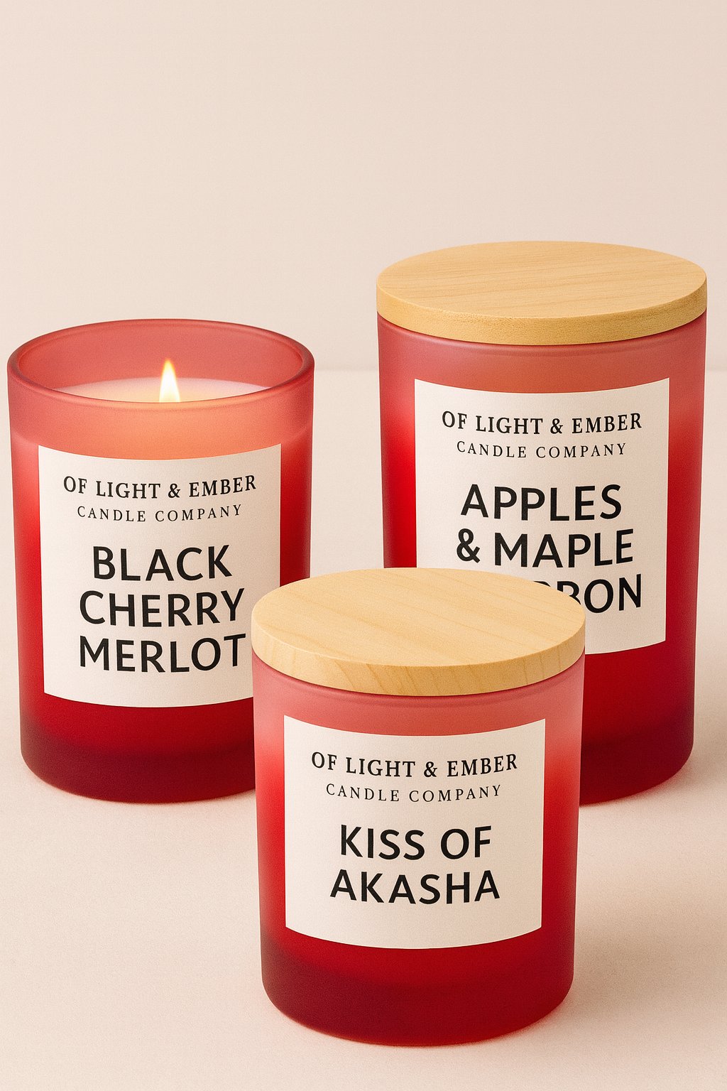 Each candle is intentionally poured in limited quantities, making the collection feel curated and exclusive. The red-gradient glow adds a touch of elegance to any décor, while the scent selection leans bold, sensual, and seasonally rich