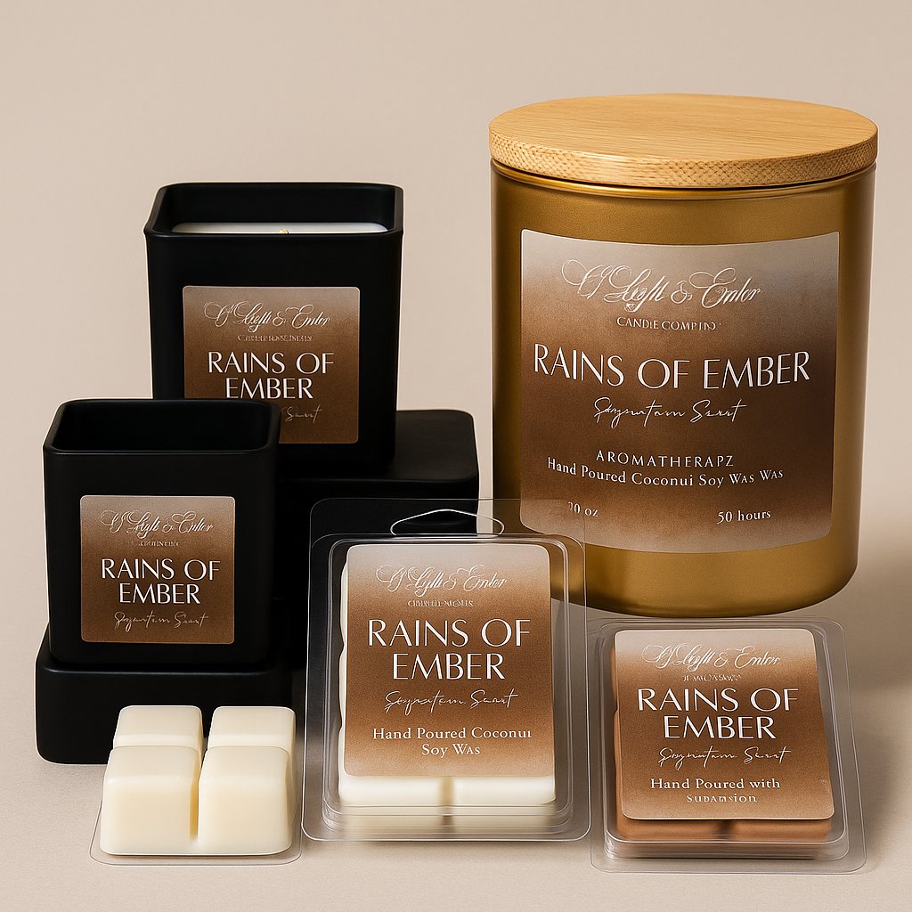 Crafted as a blend of sensual amber and rain formulas, Rains of Ember is an immersive olfactory experience—equal parts shadow and spark, whisper and flame.